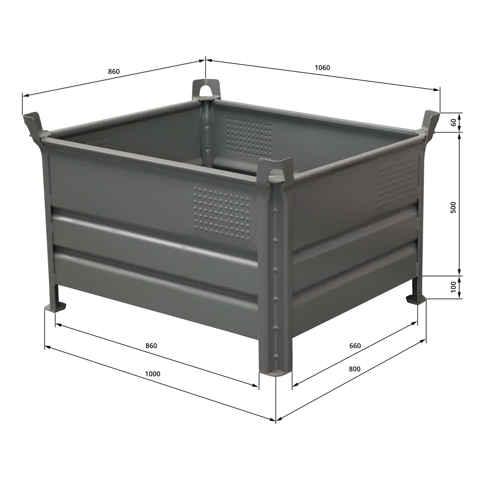 Contenedor metálico multiusos de acero galvanizado, para almacenar y transportar todo tipo de materiales. Capacidad de carga 1,5 t