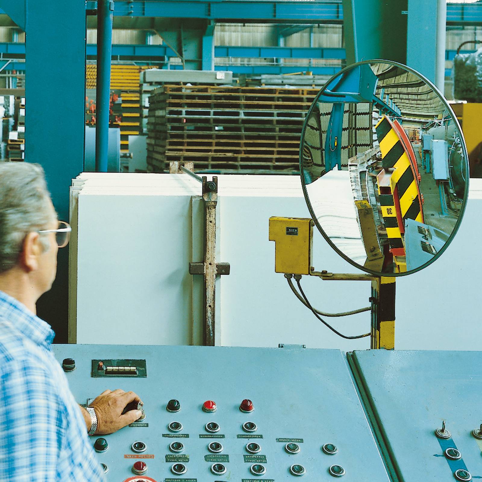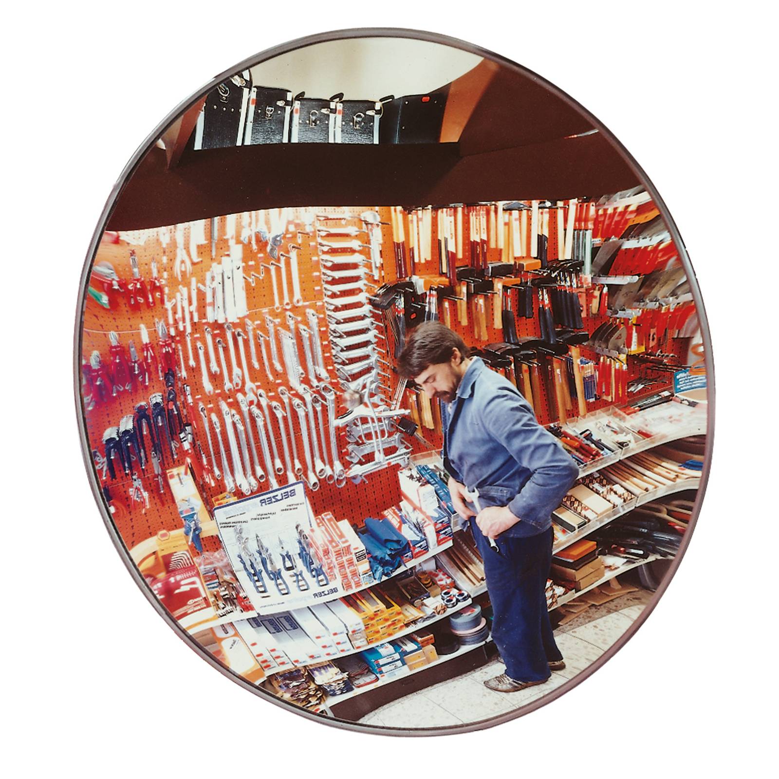 Espejo de vigilancia con superficie en cristal acrílico para uso en interiores, que reproduce imágenes claras y nítidas de personas y objetos situados a distancias cortas, medias y largas.