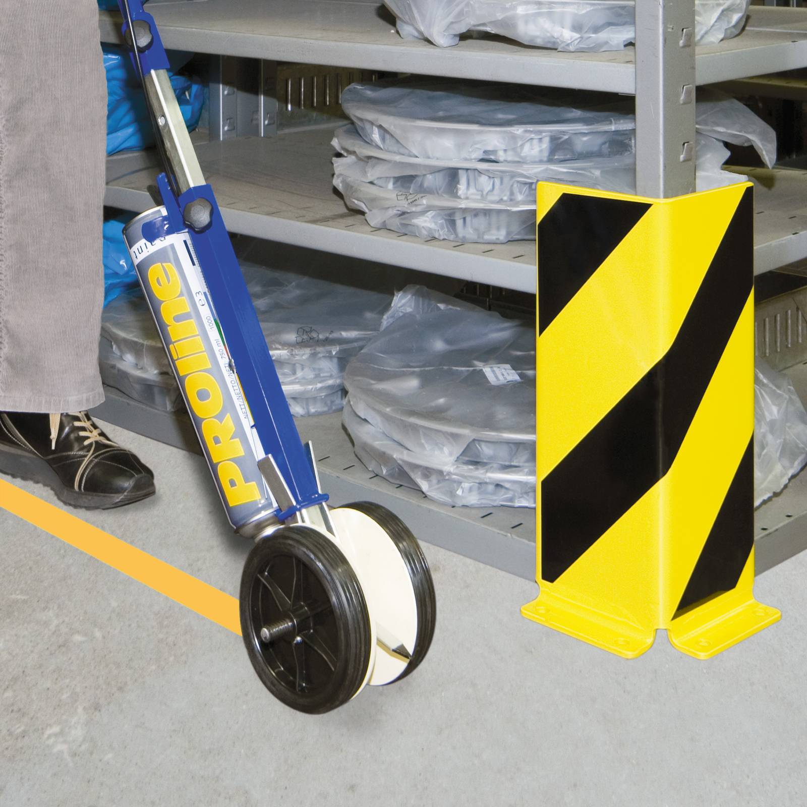 Máquina trazadora de líneas de pintura que consigue un trazado recto, limpio y de alta definición sobre todo tipo de superficies interiores y al exterior. Sistema de marcaje ergonómico, fácil y cómodo de gobernar con una mano.