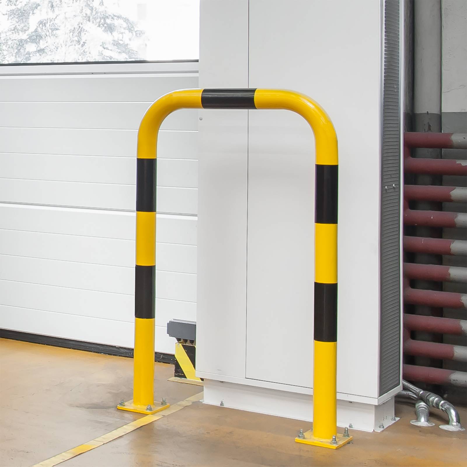 Barrera arco de protección en acero lacado, y acero galvanizado lacado para exterior. Resguarda todo tipo de espacios de daños producidos por el tránsito de carretillas elevadoras, transpaletas, montacargas y otros vehículos industriales. Muy efectiva y segura.