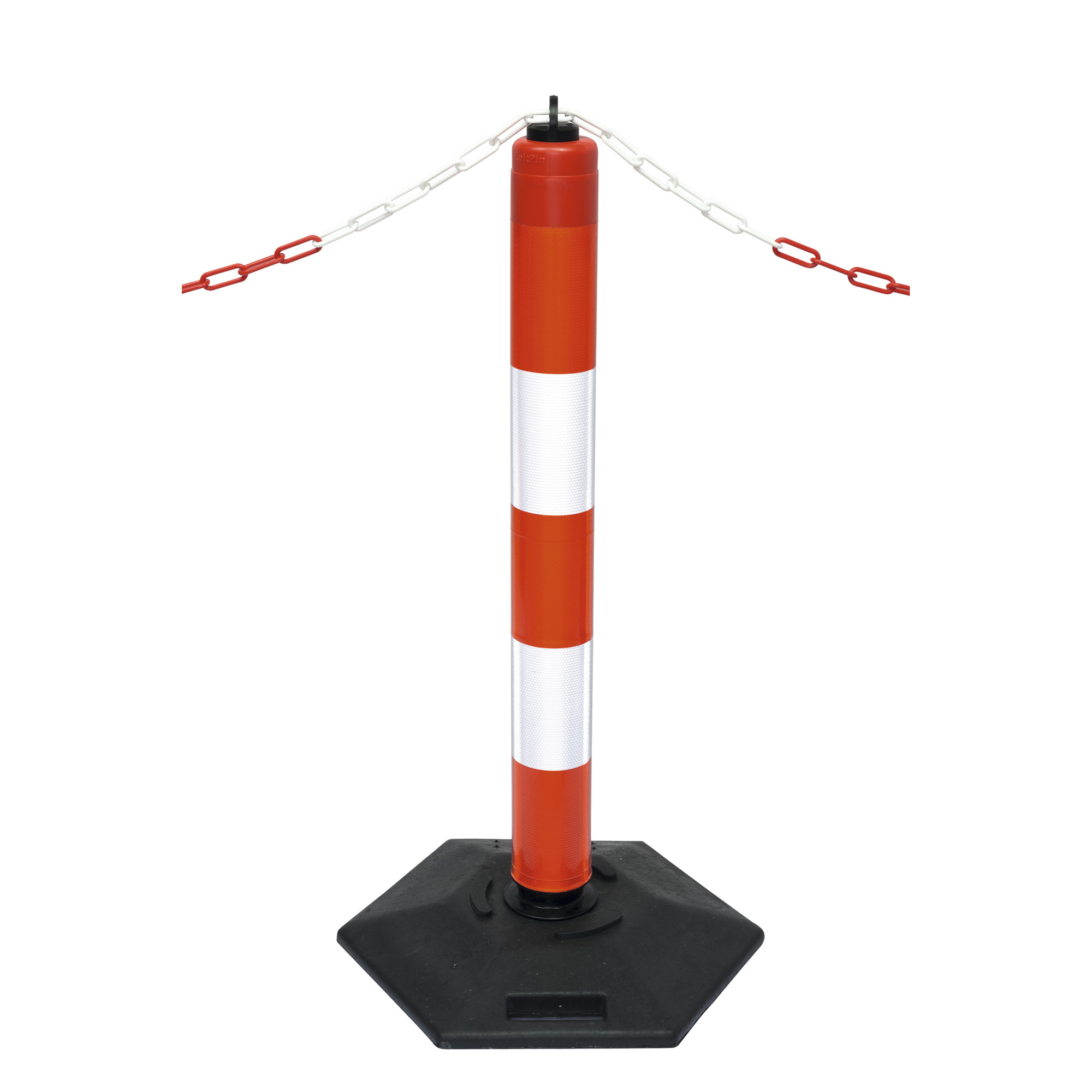 La base hexagonal de caucho reciclado ofrece una gran estabilidad incluso sobre suelos irregulares al exterior. También puede fijarse al suelo con tacos para crear perímetros de seguridad más permanentes.