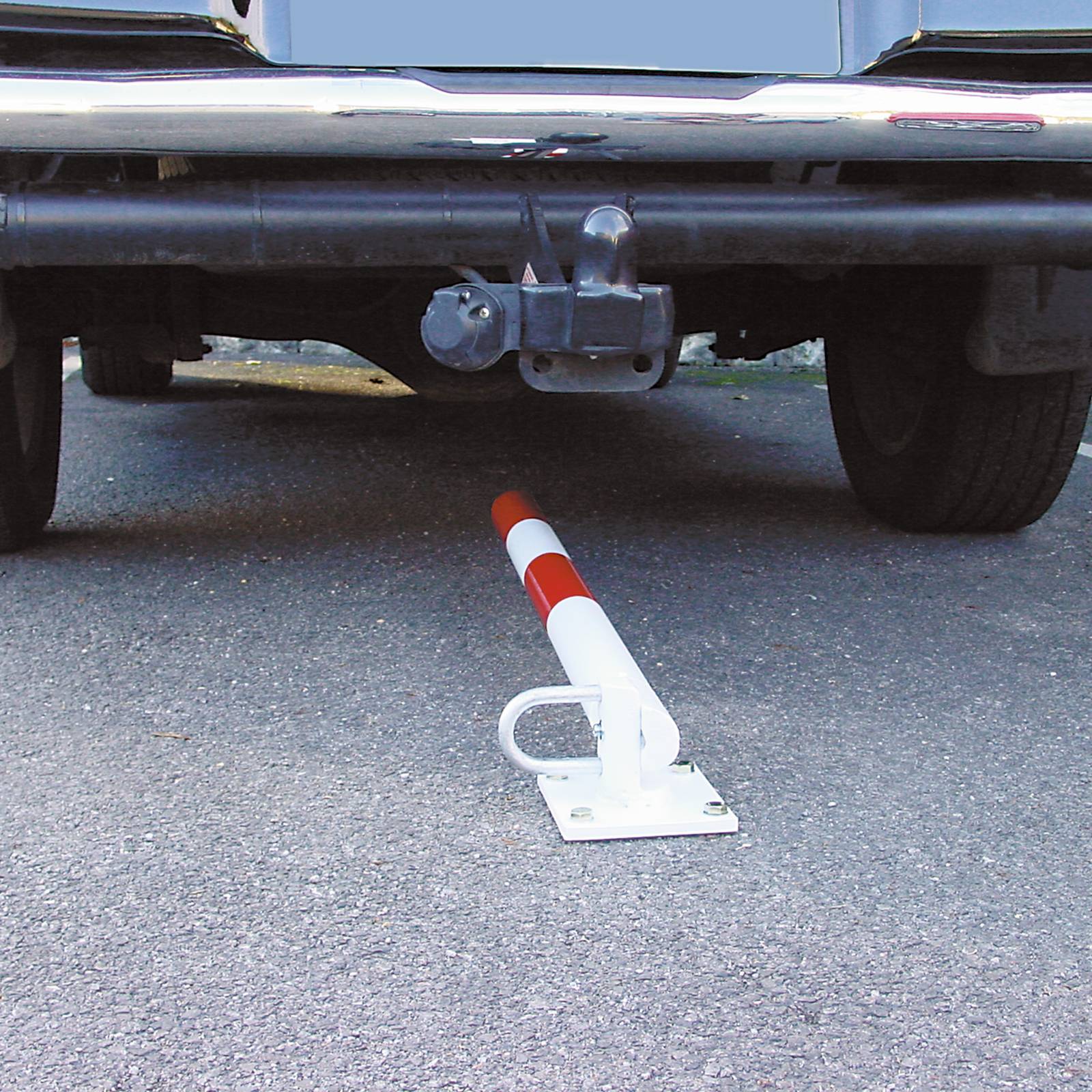 Cepo guarda parking abatible que previene el estacionamiento no autorizado en plazas de aparcamiento privadas. Bloqueo mediante pasador en forma de U, especialmente diseñado para un uso intenso en garajes interiores o aparcamientos situados al exterior, bajo condiciones climatológicas de cualquier tipo.