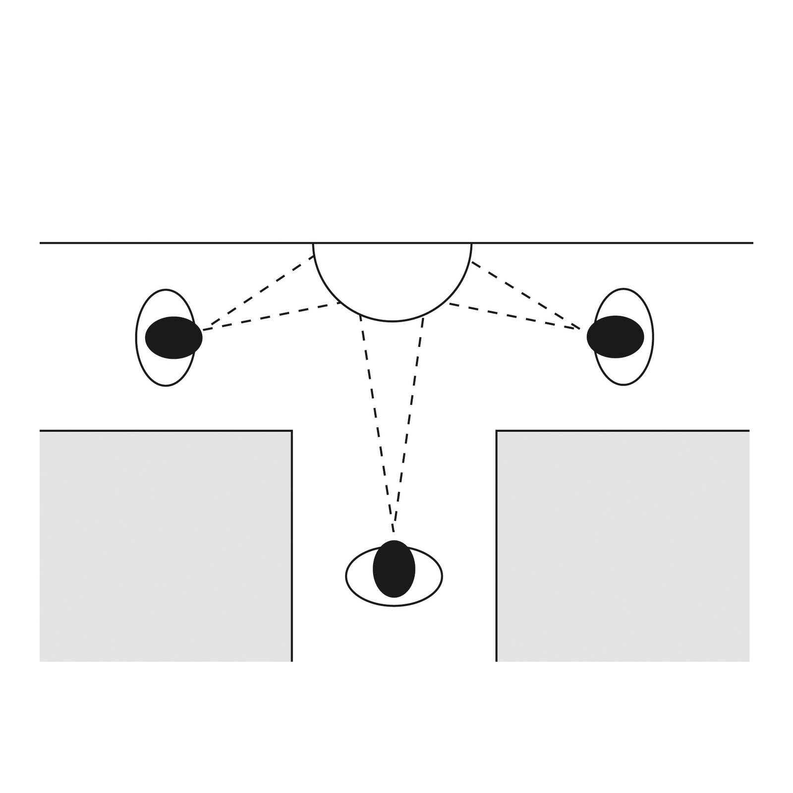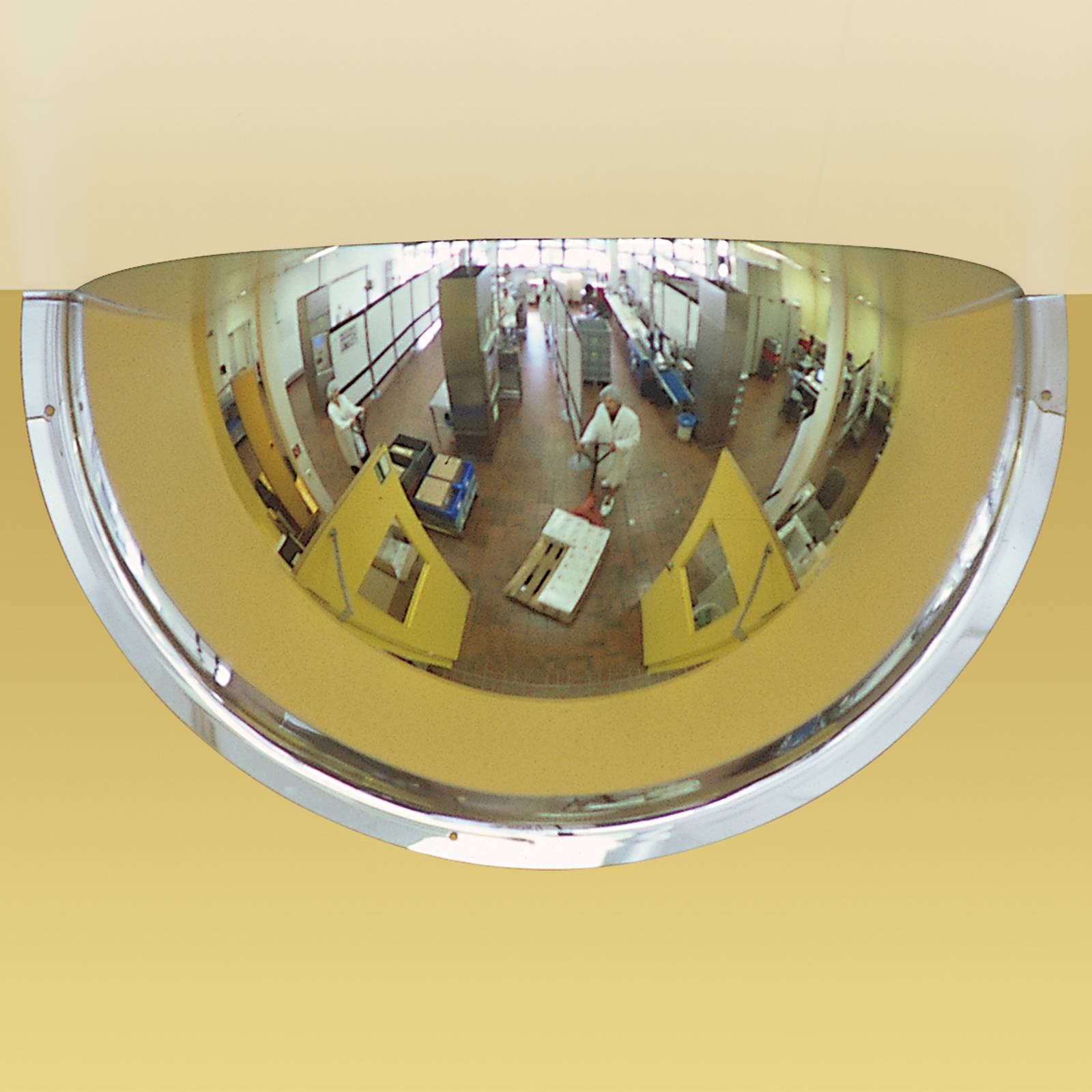 Espejo de vigilancia hemisférico panorámico de 3 direcciones, con superficie en cristal acrílico para uso en interiores. Reproduce imágenes claras y nítidas de personas y objetos situados a distancias cortas y medias.