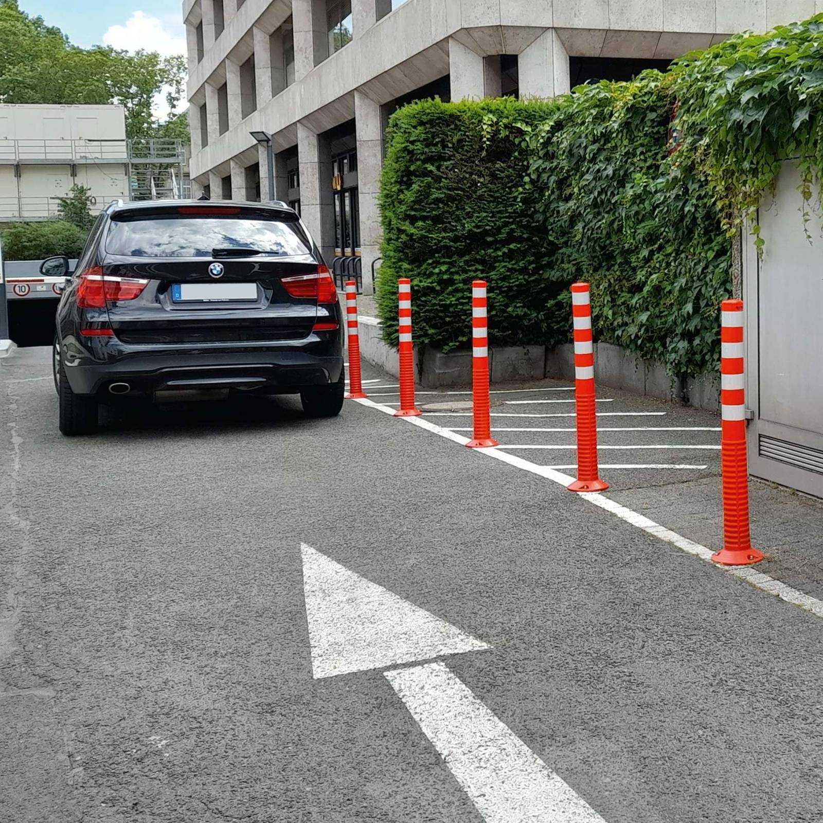 • HITO ARROLLABLE: La mezcla especial de poliuretano termoplástico (TPU) permite al hito flexible ser arrollado por un vehículo.