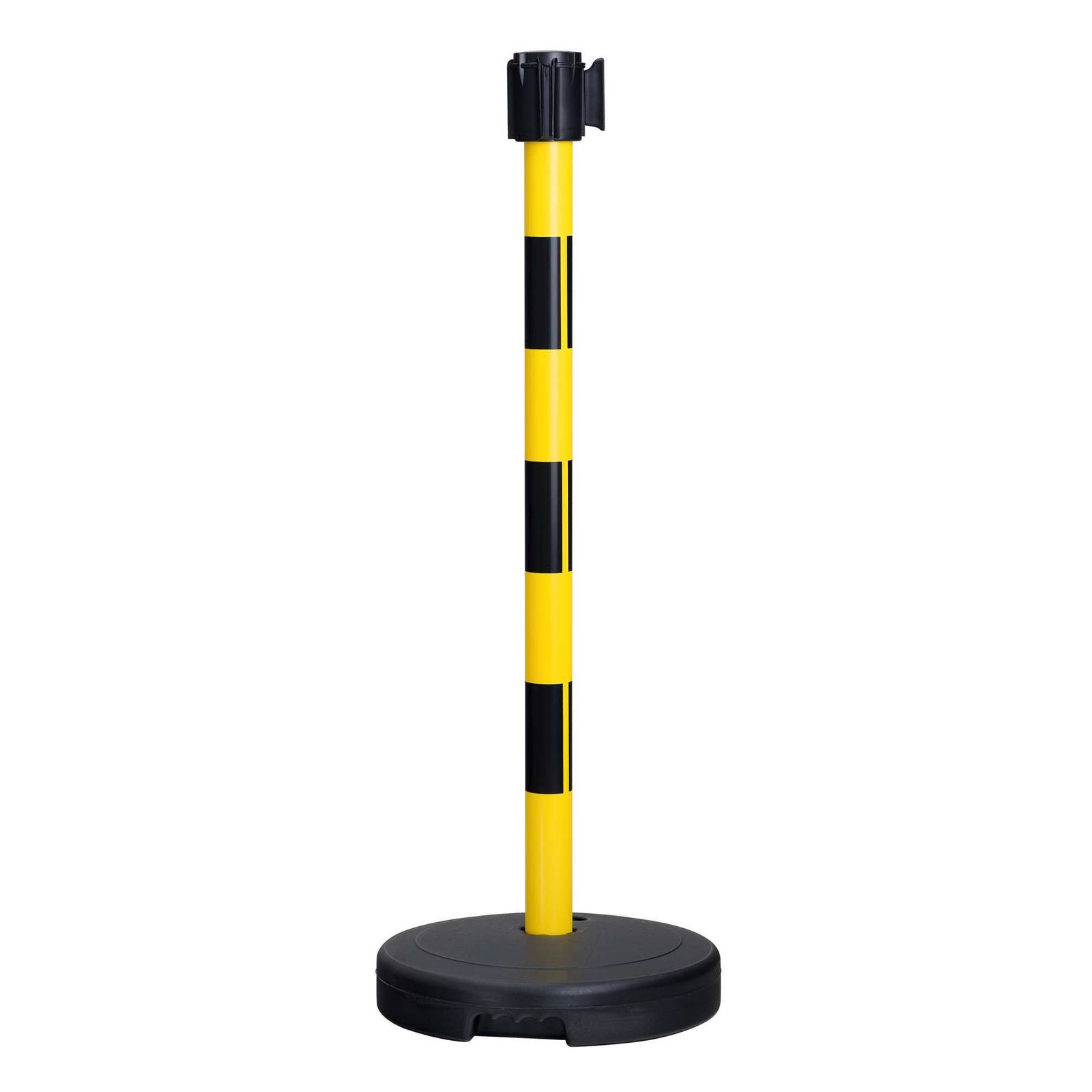 Pivote con cinta extensible retráctil, alternativa calidad-precio a los postes separadores industriales de aluminio. Muy funcional y práctico, es ideal para delimitar lugares de trabajo, máquinas y vías de circulación tanto en interiores como al exterior.